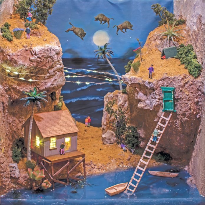Dolce also built a diorama of Two Harbors that was used for the cover of the album. Among the diorama are small sections, each of which is key to a song on the record.
